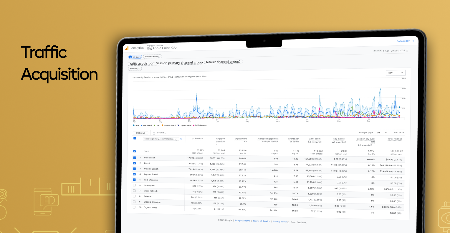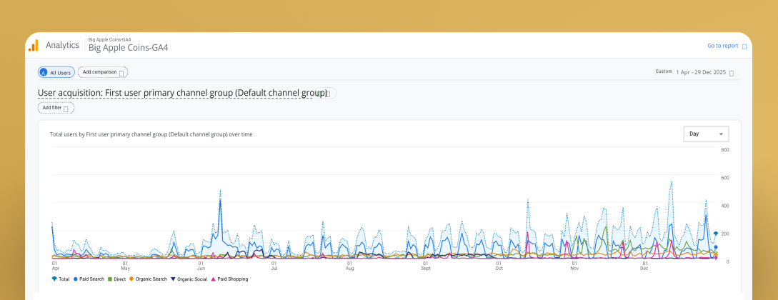 Big Apple Coins, an online store for rare coins, bullion, and collectible metals, reached out after noticing its digital growth was slowing. The Shopify site had steady traffic, but too much of it wasn’t converting; a common issue in niches where buyers take time to compare options and look for strong trust signals before spending.