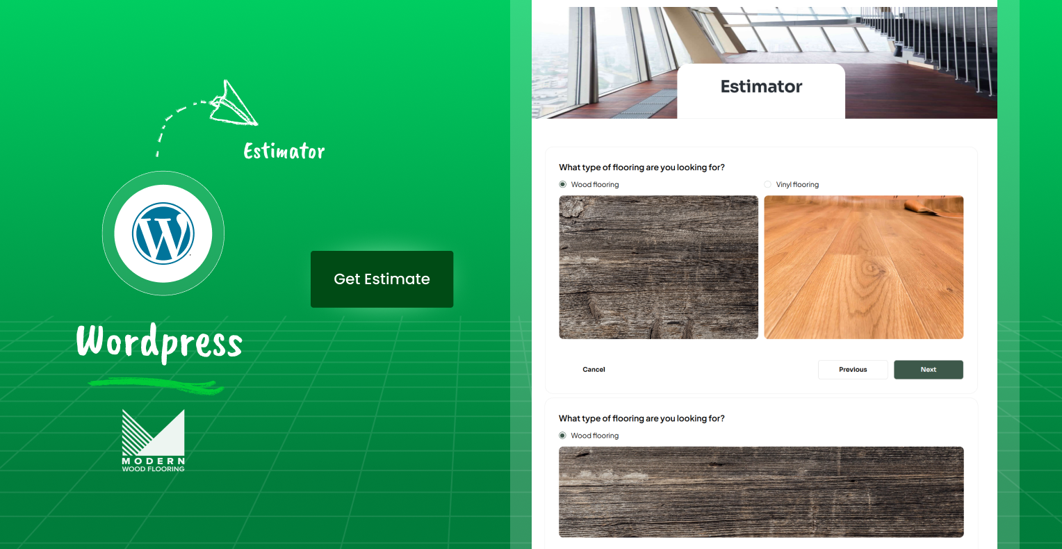 A detailed form allows visitors to input flooring type, room size, and width. They receive instant quotes by email, while the business captures valuable leads.